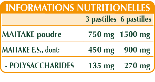 Complément alimentaire à base de maitake, un champignon traditionnellement utilisé au Japon depuis des millénaires qui favorise les défenses naturelles de l'organisme.