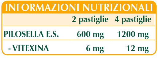 Piloselle (Hieracium pilosella) herbe E.S. (standardisé à 1 % en vitexine), maltodextrine de maïs ou de riz, cellulose microcristalline°, gomme arabique°, dioxyde de silicium°°, stéarate de magnésium d'origine végétale°°.