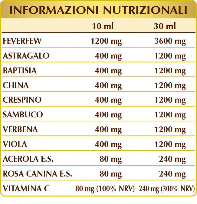 Tableau nutritionnel