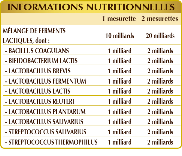 Complément alimentaire à base de levures probiotiques qui sont utiles pour favoriser l'équilibre de la flore bactérienne intestinale.