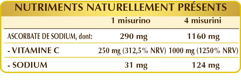 Complément de vitamine C sous forme d'ascorbate non acide. La vitamine C possède de nombreuses propriétés : elle favorise le métabolisme énergétique en réduisant la fatigue et l'épuisement ; elle protège les cellules contre le stress oxydatif et régénère la forme réduite de la vitamine E ; elle contribue au bon fonctionnement du système immunitaire, du système nerveux et de la fonction psychologique ; elle favorise la formation de collagène en aidant à préserver les fonctions normales des vaisseaux sanguins, des os, des cartilages, de la peau, des dents et des gencives ; elle augmente l'absorption du fer.