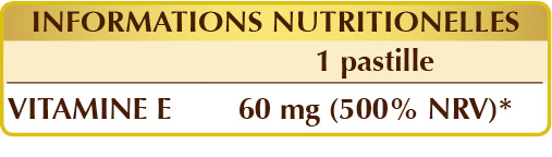 Maltodextrine de mais ou de riz, vitamine E d'origine naturelle (acétate de D-α-tocophéryle), cellulose microcristalline°, gomme arabique°, dioxyde de silicium°°, stéarate de magnésium d'origine végétale°°.